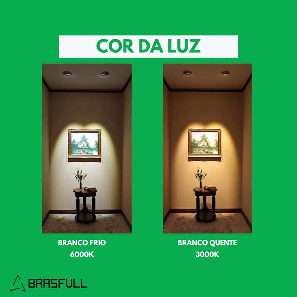 Branco Quente (3500K): Ideal para ambientes relaxantes, como quartos e salas de estar.
