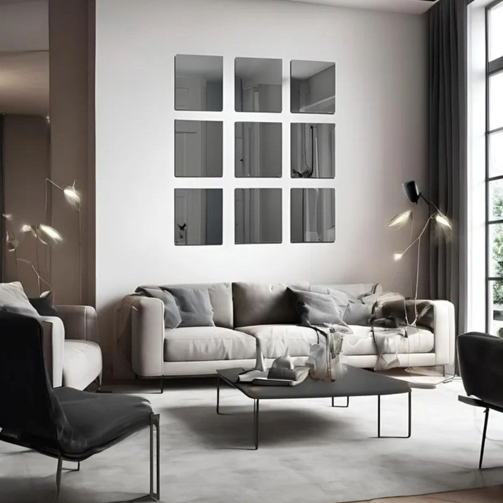 Espelho Adesivo Quadrado 30x30cm em Acrílico Flexível com Adesivo de Alta Fixação para Decoração de Paredes e Móveis