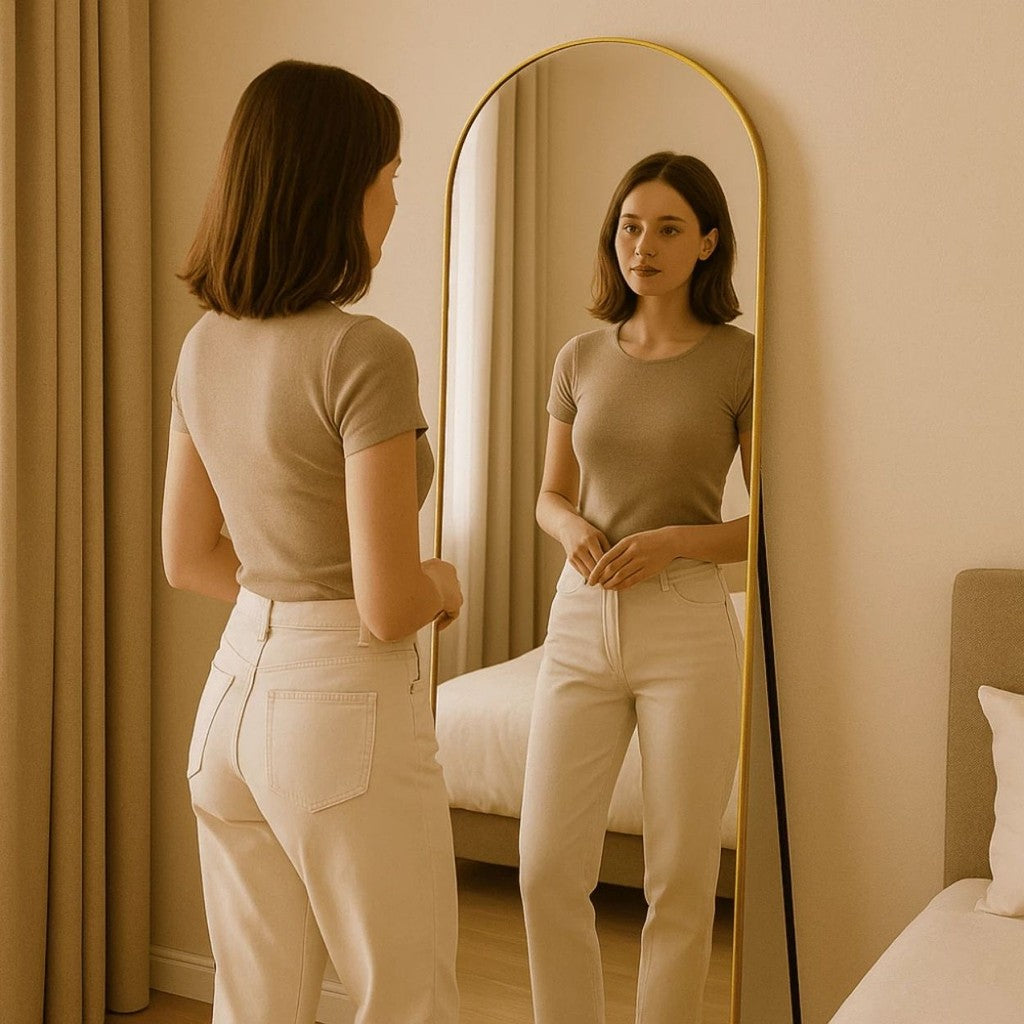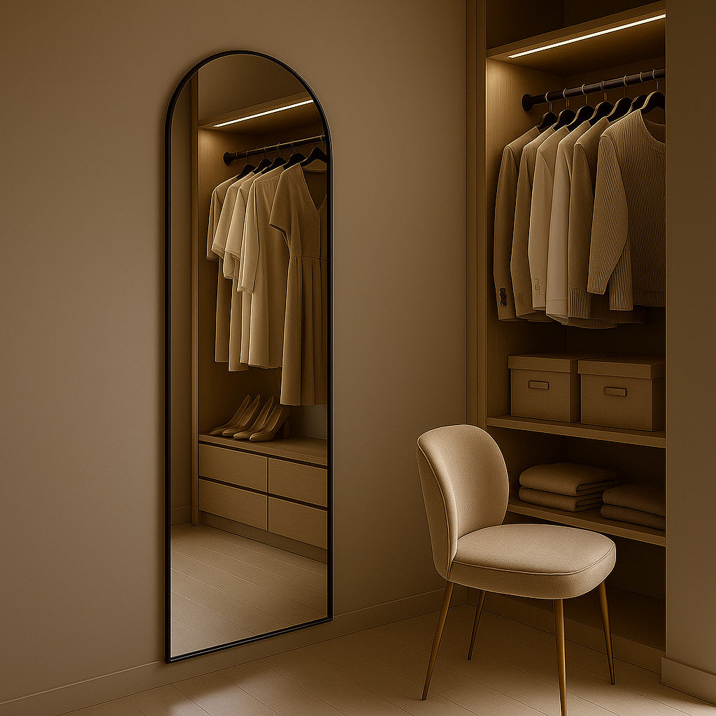 Tipo: Espelho de corpo inteiro com cantos arredondados