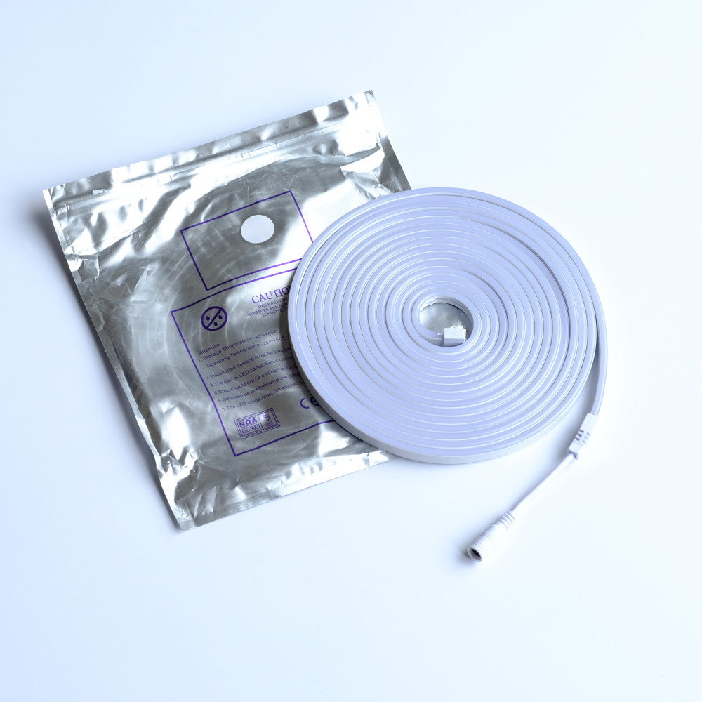 Fita de LED Mangueira 5M • 12V • 22W • SMD 2835 • 9 cores • IP65 • Silicone • Flexibilidade 90° • Corte 2,5cm