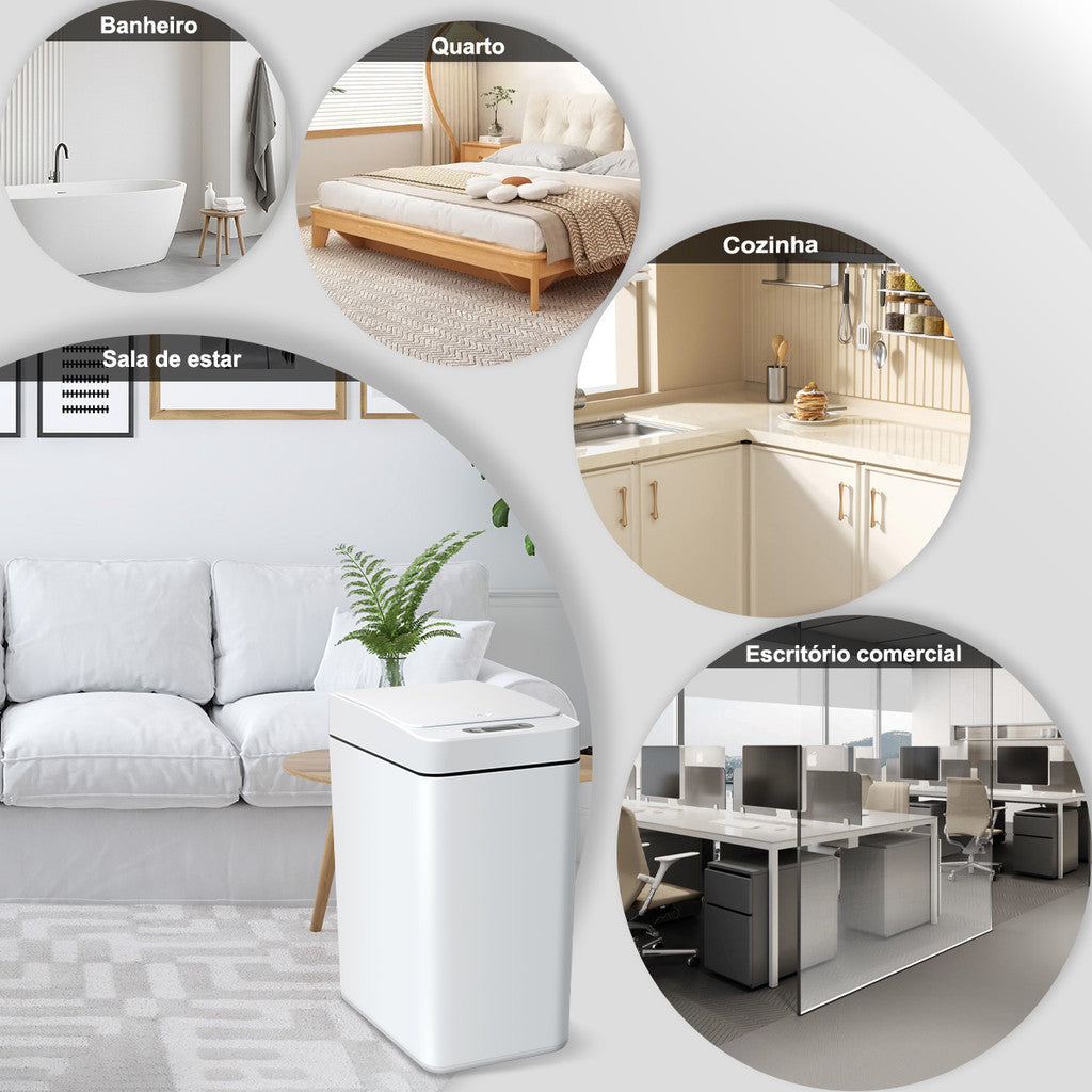 Lixeira Inteligente com Sensor Automático 12L – Abertura Sem Toque, 3 Modos e Exibição de Bateria